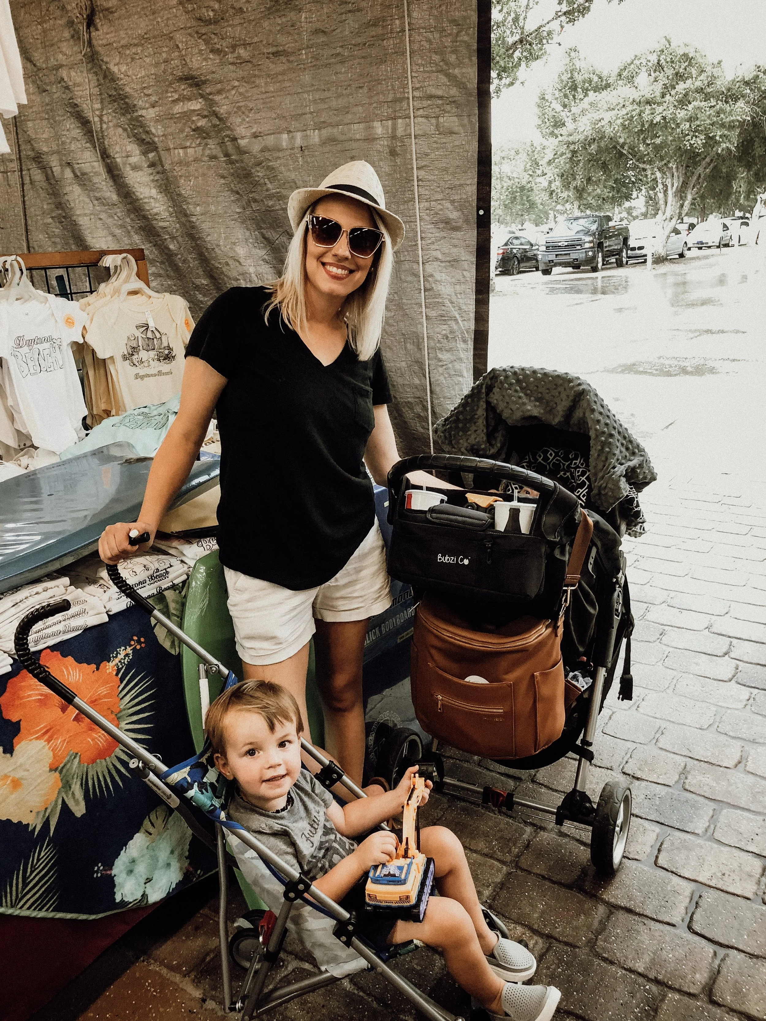 Day two started off with a fun trip to the Daytona Flea Market! It’s only open on the weekends so we had to take our chance while we could. Haha! It was pretty miserably hot and the babes weren’t too thrilled. We did manage to let Ezra take a nap and bribed Zeke with a crappy overpriced tractor toy so that we could walk around and look at all the junk for a few more minutes. I did manage to snag this $5 dolla hat and some cheap sunglasses! 😂
