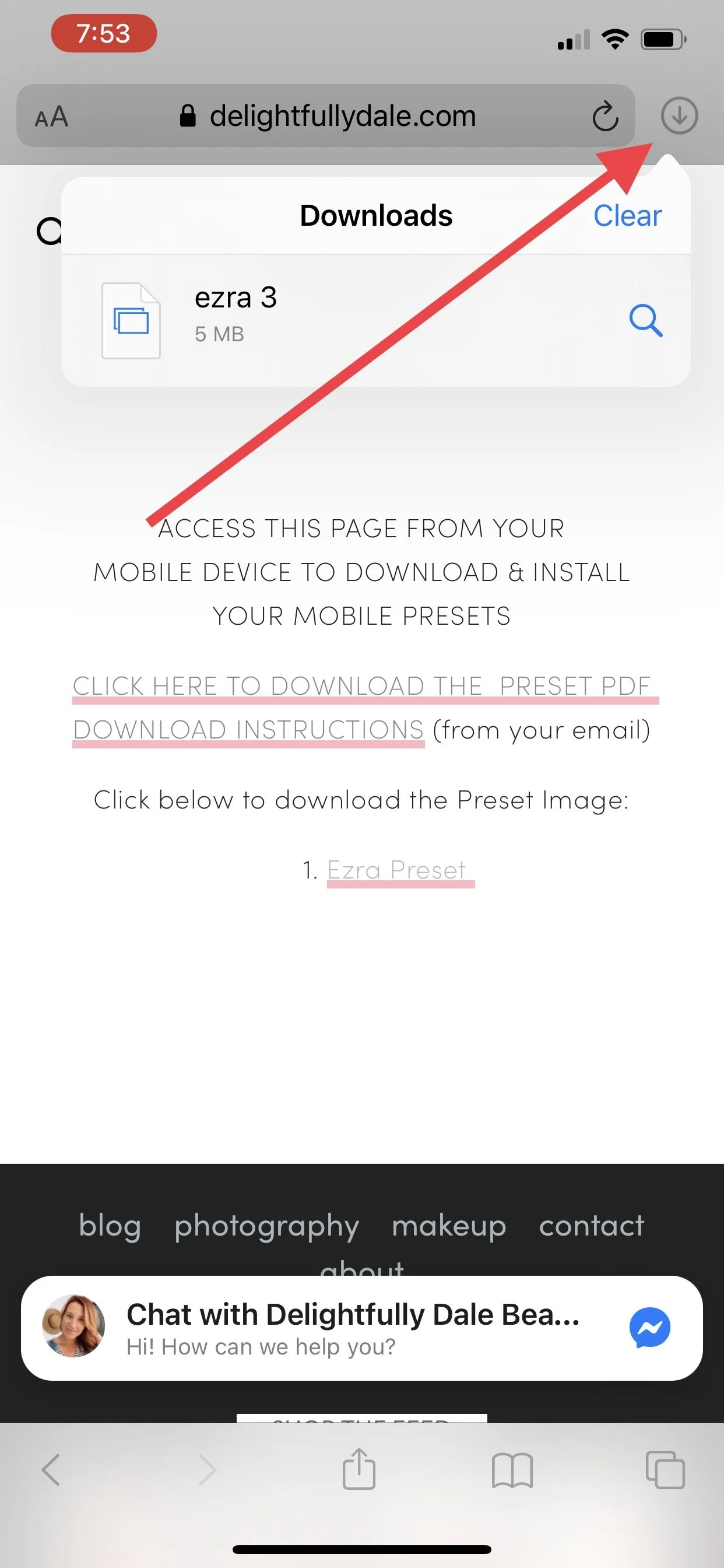 Step Three: Once the membership page is open, click the preset to download it.
