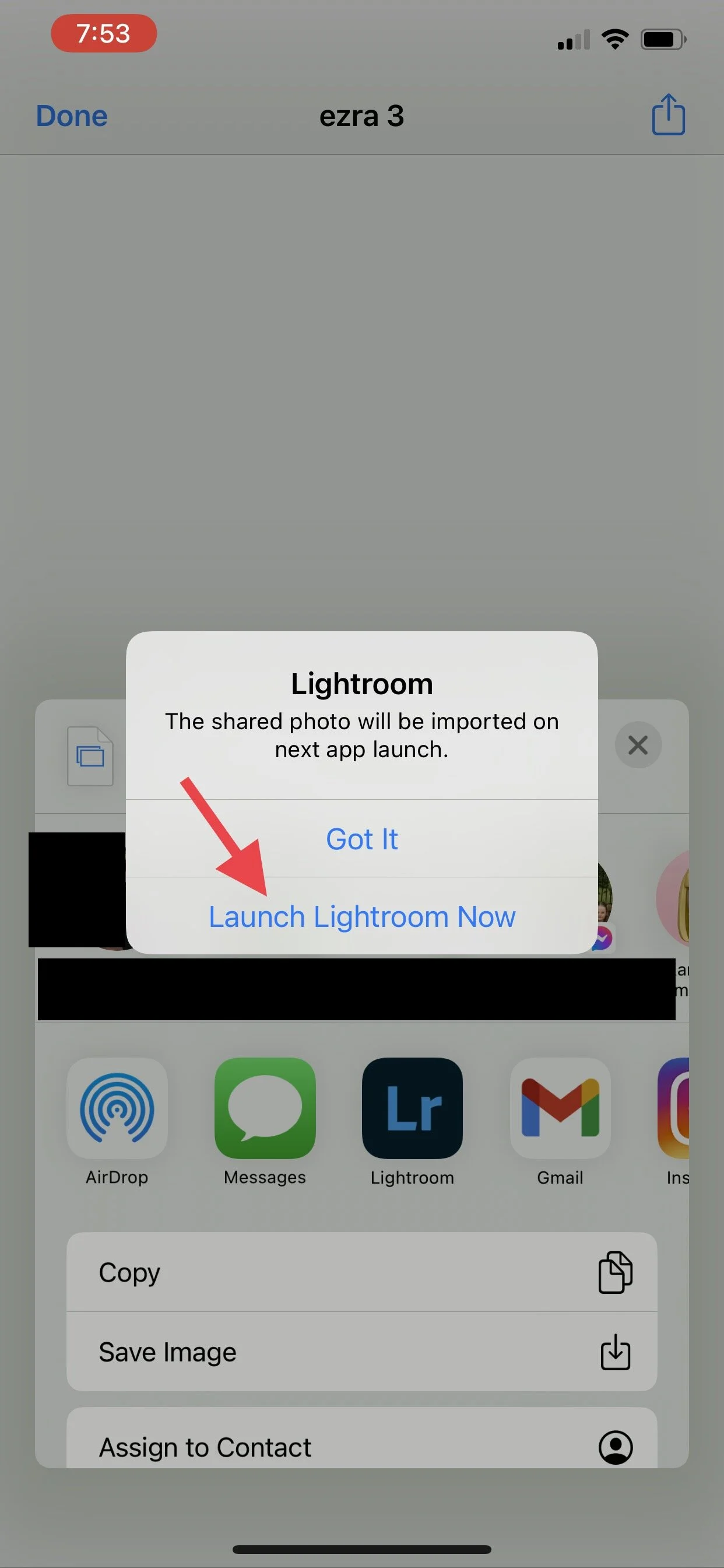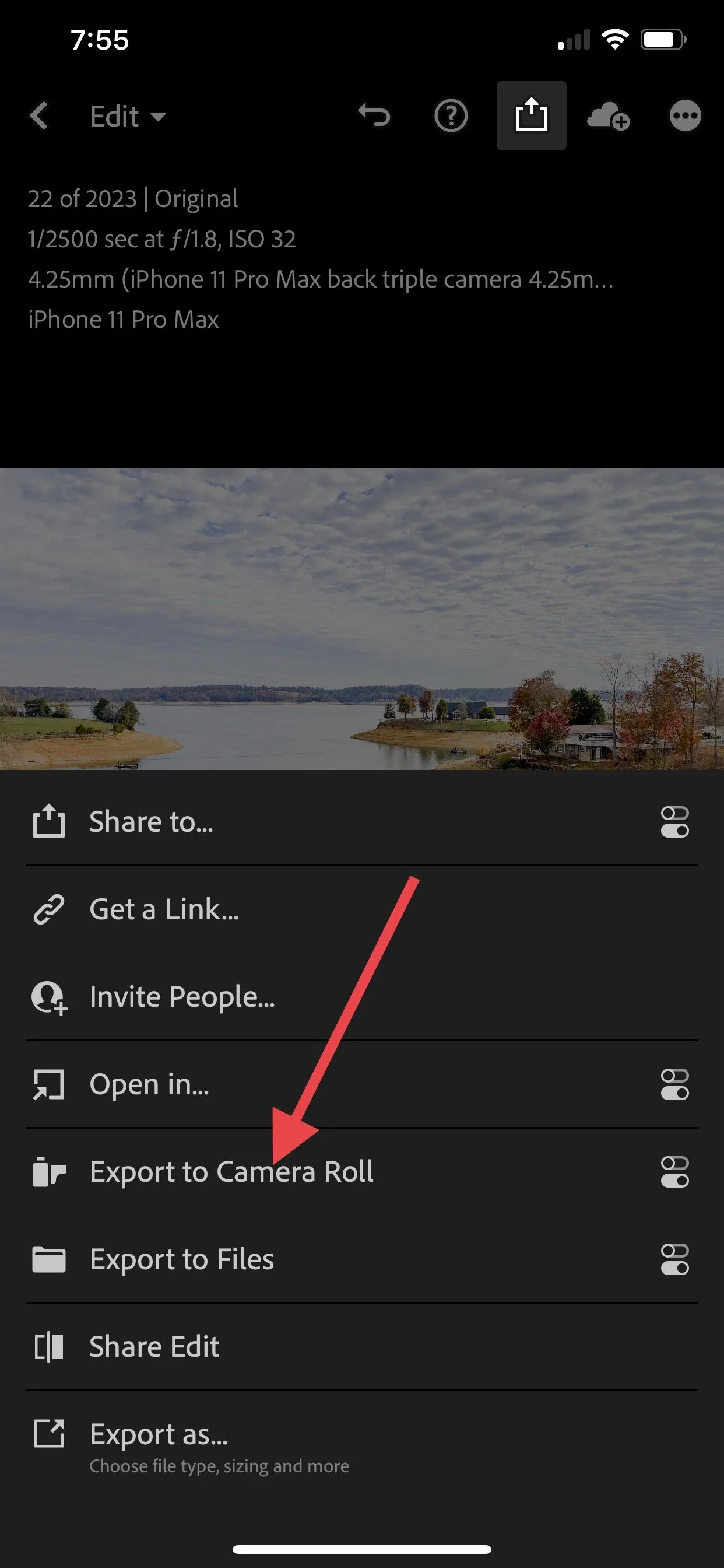 Step Seven: Select Lightroom. If it is not an option, scroll all the way to the right and select “more” to find it.
